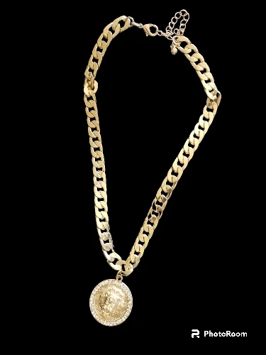 Bud Wuckert A beautiful necklace. The chain is very wide, the pendant itself is great! Looks chic. I bought the same ring, earrings and bracelet.