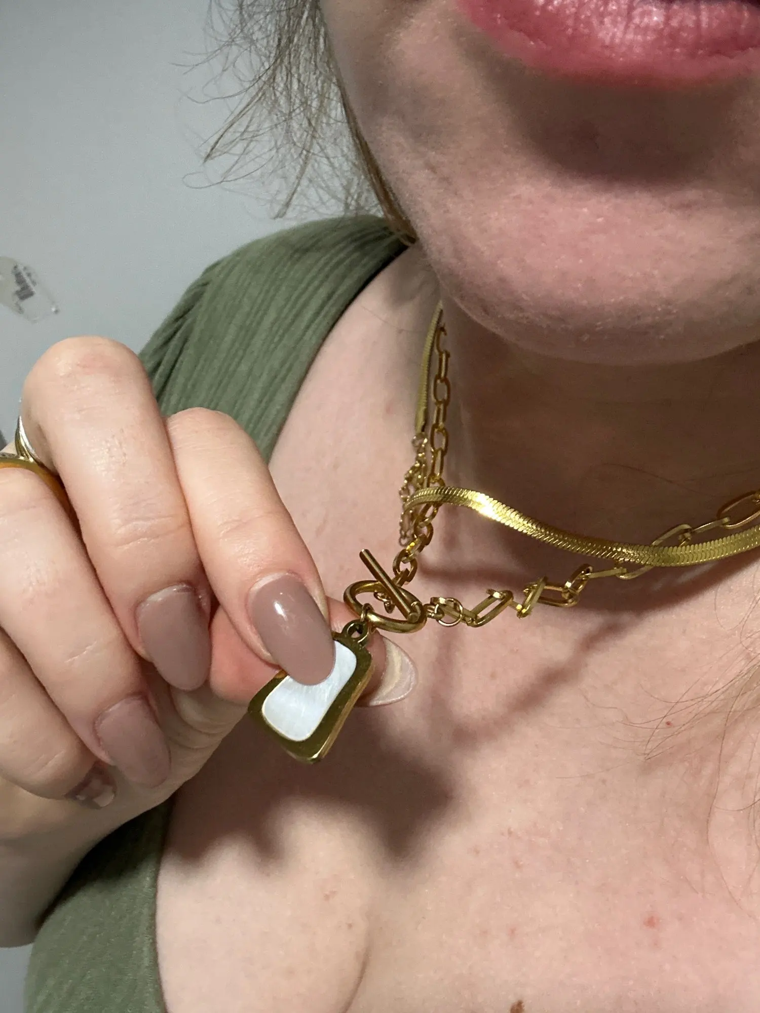 1pc Gold Tone Vintage White Pearl Chain Stainless Steel Necklace