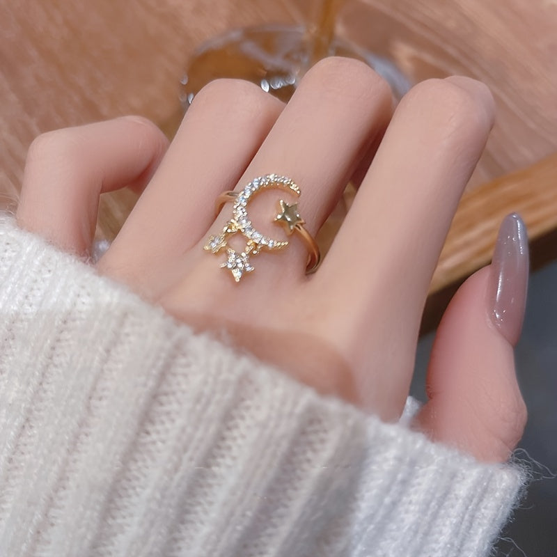 Glitter Geometric Luxury Star Pendant Ring Star Moon Ring