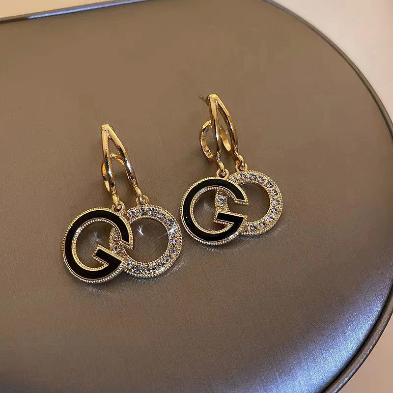 Cool Artificial Diamond Letter Round Earrings, Trendy Party Jewelry