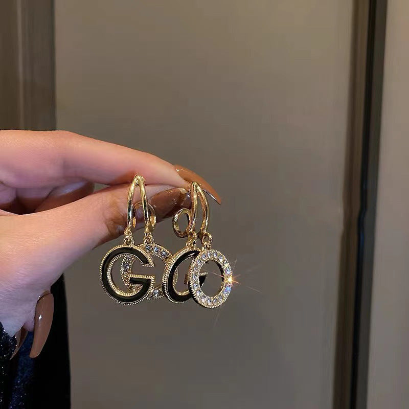 Cool Artificial Diamond Letter Round Earrings, Trendy Party Jewelry, Christmas Gift, New Year's Gift, Valentine's Day Gift For Women Mom Girlfriend Family Friends