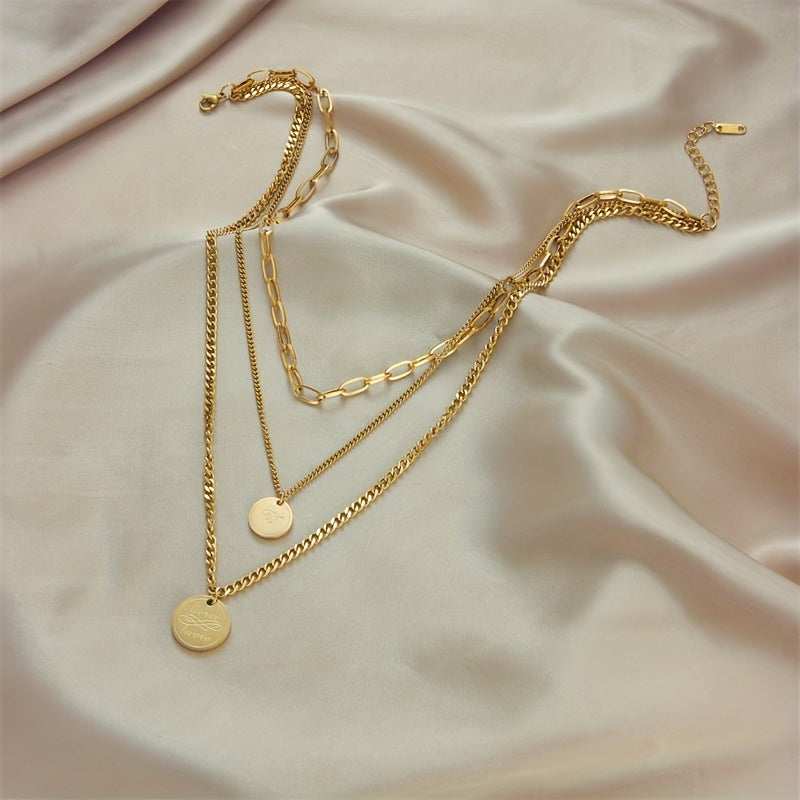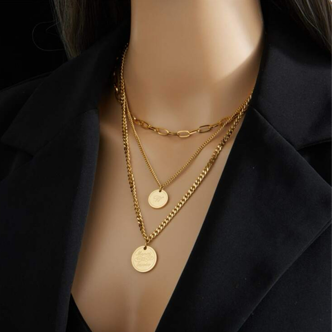 1pc Men's Stainless Steel 3-Layer Circular Letter Pattern Coin Pendant Necklace Jewelry For Women Elegant Ladies Banquet Wedding Jewelry Accessories Anniversary Gift For Lovers For Friends For Family Members