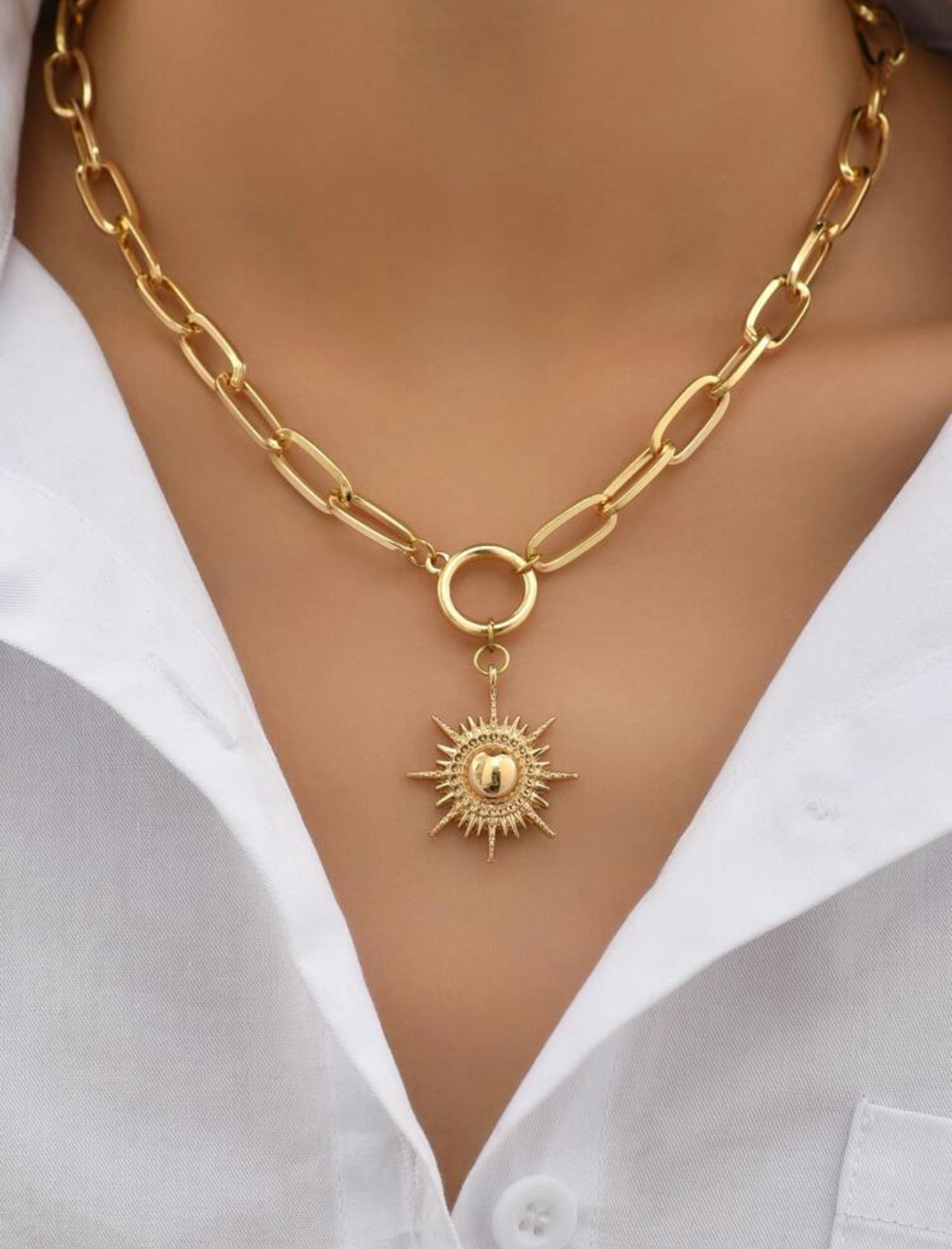 Exquisite Golden Sun Charm Design Pendant Necklace Bohemian Elegant Style Alloy Jewelry Daily Casual