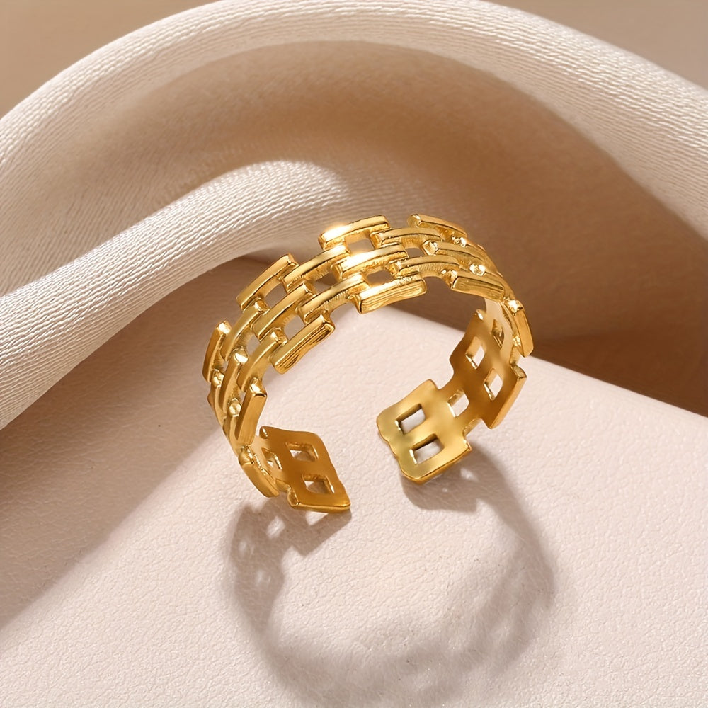 Hip Hop Style Cuff Ring Made Of Stainless Steel Plated Trendy Chain Design Suitable For Men And Women Match Daily Outfits
